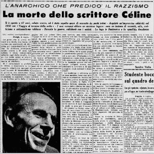 S. Volta, La morte dello scrittore Céline, «La Stampa», 2 luglio 1961. ↩